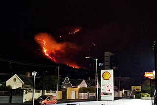 Buiten, hoog in de nacht, laait een inferno